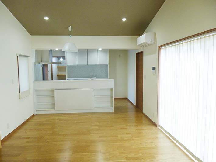 母屋のリビングを足が不自由で手術をされたご主人の部屋として使用するために別棟の物置を改造してリビング兼客間にしました。